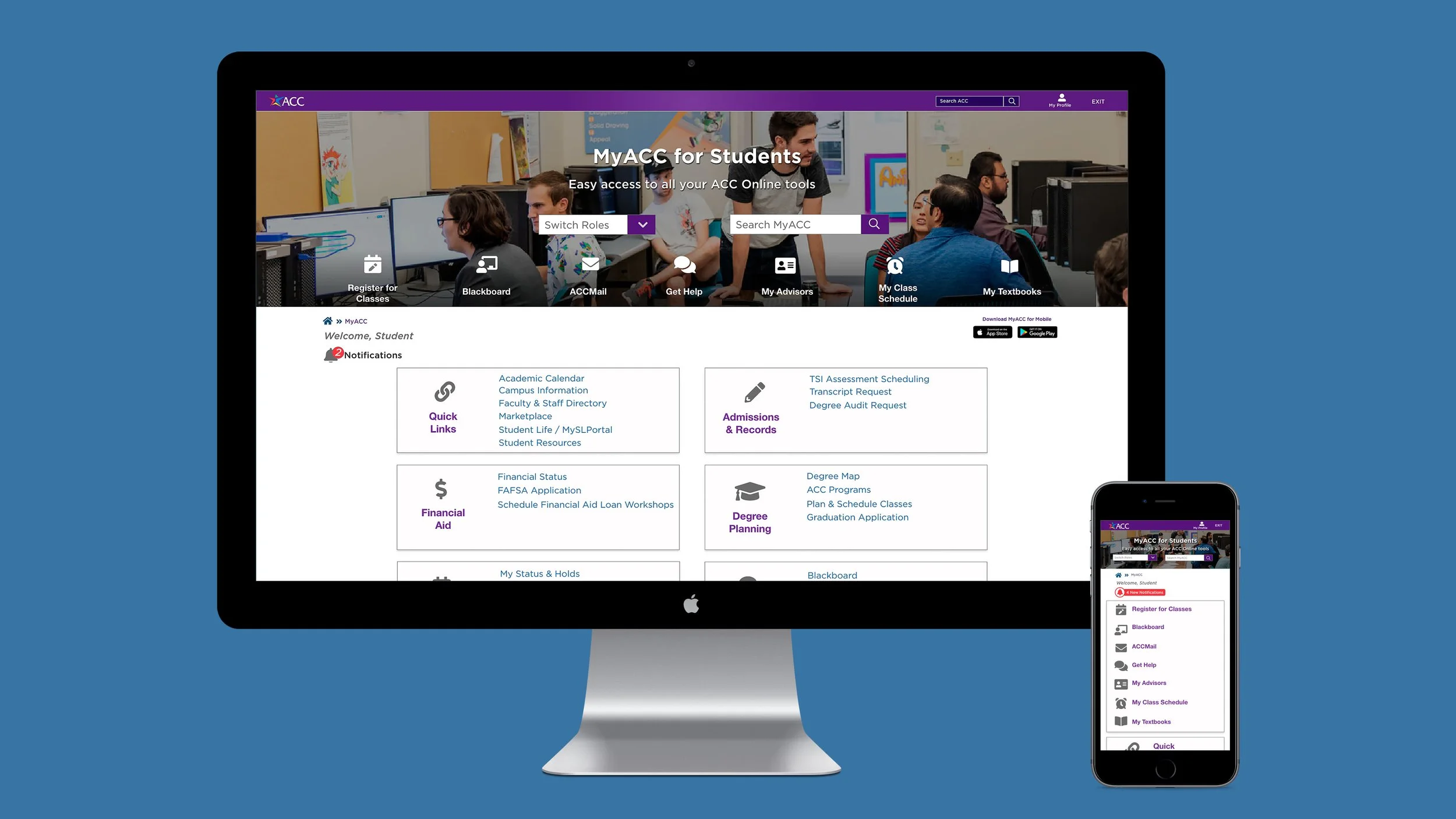 Impact: The redesign of “MyACC” increased ease of use of online services for 72,000 students, faculty, and staff by surfacing frequently used links to more logical locations, thus enabling users to find information in seconds instead of minutes.